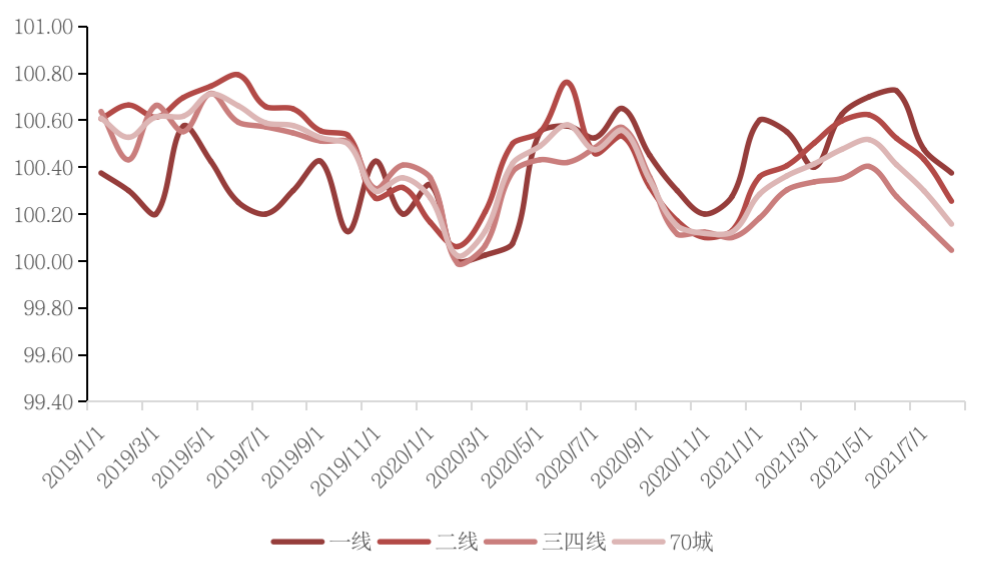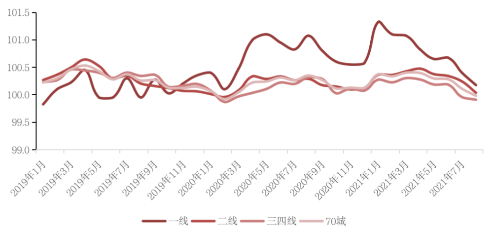 从全国70个大中城市商品住宅销售价格来看,8月份,一、二、三线城市新建商品住宅销售价格环比上涨0.3%、0.2%和持平,涨幅比上月分别回落0.1、0.2个百分点。一、二、三线城市二手住宅销售价格分别环比上涨0.2%、环比上涨0.2%、环比下降0.1%,其中,一线城市中深圳环比下降0.4%,连续4个月下降;三线城市二手房价格连续两个月下降。